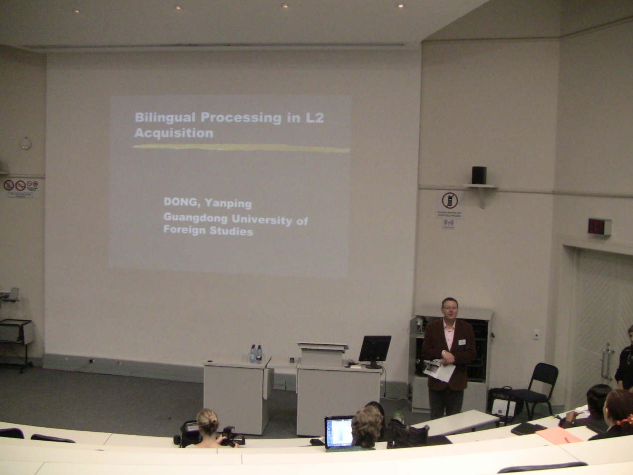 2012年10月30-31日,我中心董燕萍教授受邀参加南非Rhodes大学举办的“多语环境中的第二语言教学”研讨会,并做大会主旨发言。会议邀请了两个主旨发言人,来自德国的Ekkehard Wolff教授主要从社会语言学的角度探讨高等教育中的语言问题,我中心的董燕萍教授则从心理语言学的角度探讨第二语言习得过程中的双语加工问题。董教授主要介绍了自己及所指导的学生十多年来就双语加工问题所做的实验研究,包括两种语言在语音加工、心理词库、句子加工及语篇加工上动态关系,分析趋同(convergence)及分离(divergence)两种趋势如何在二语习得中的此消彼长过程。
