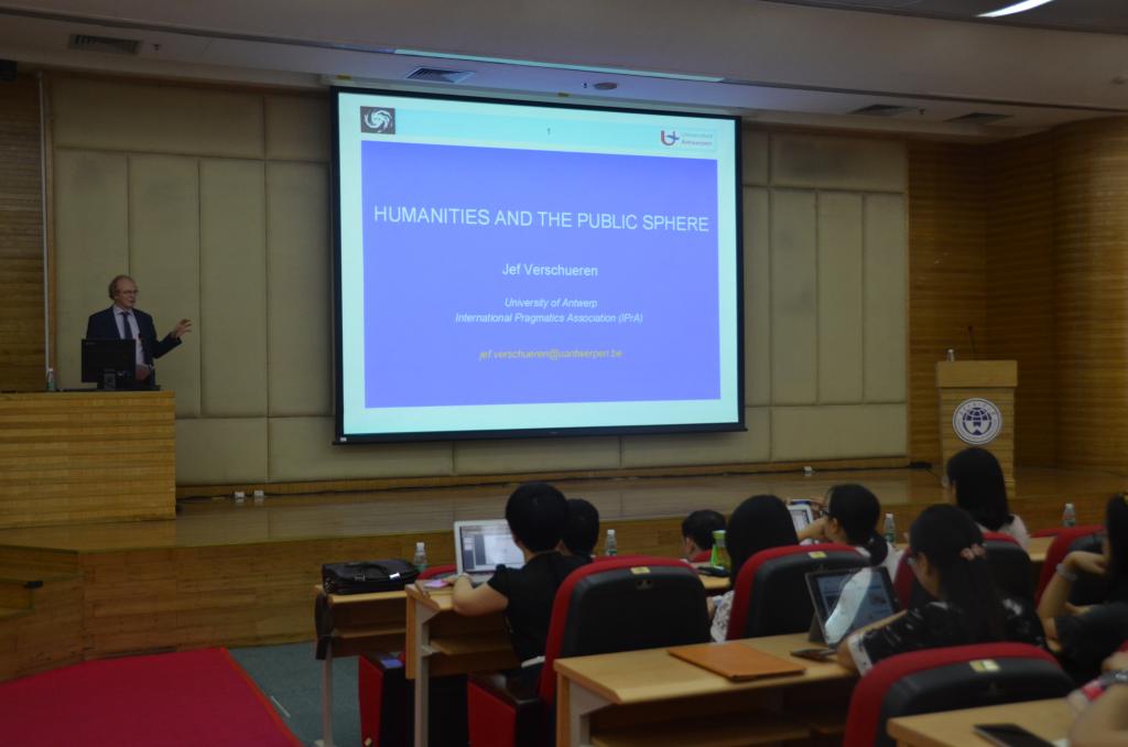2015年10月27日上午,著名教授论坛第272讲在北校区图书馆报告厅举办。国际语用学会创始人兼秘书长、世界著名语言学家Jef Verschueren教授应邀在北校图书馆报告厅作了题为Humanities and the Public Sphere的讲座。