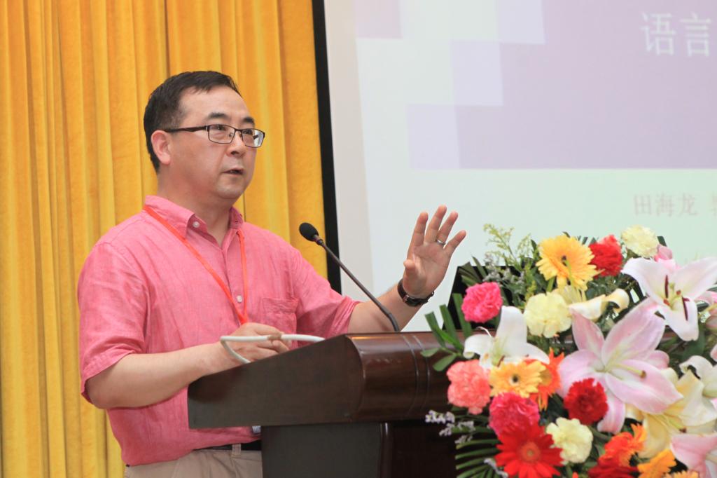 2016年5月15日上午十点半,在第十三届全国外国语言学及应用语言学博士生论坛圆满闭幕前,天津外国语大学田海龙教授在七教水上报告厅举办了题为“语言学研究的社会关切及其实现方式”的主旨发言,讲座由我中心专职研究员冉永平教授主持。