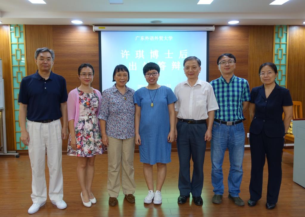 2016年9月19号下午,外国语言学及应用语言学研究中心许琪博士后出站报告会在第八教学楼306会议室举行,会议的主要议题是对许琪进行出站考核。华南师范大学何安平教授主持会议并担任考核小组组长,专家组员包括广东外语外贸大学彭宣维教授、姜琳教授、牛瑞英教授、任伟教授。出席会议的还有人事处师资科的王靖老师。博士后许琪的合作导师王初明教授列席了会议。