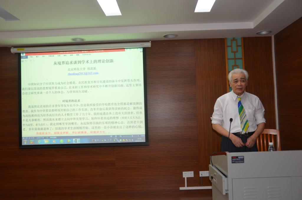 2016年11月22日下午,北京师范大学周流溪教授应邀在我中心作了一场题为“从境界追求谈到学术上的理论创新”的学术讲座。讲座由我中心副主任徐海教授主持,来自校内外的众多师生参加了讲座。
