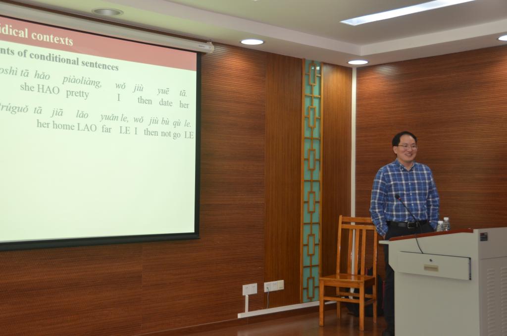 2018年10月18日下午,美国俄亥俄州立大学解志国教授应邀在广东外语外贸大学外国语言学及应用语言学研究中心做了题为Mixing emotions into degree intensification: A multidimensional approach的学术讲座,探讨了汉语中带有主观倾向的程度副词如“好、老、怪”的语义问题。讲座由我中心专职研究员张庆文教授主持,云山领军学者石定栩教授、吴庄副教授、本校以及其他高校的硕博士研究生一同参加了此次讲座。