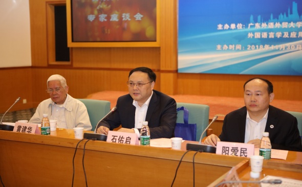 首先,石佑启校长代表学校致欢迎辞。石校长先对《现代外语》的历史作了一个简短回顾:自1978年王宗炎、桂诗春两位先生创办《现代外语》以来,期刊搭上国家改革开放的快车,历经四十载,成为人文社科类的核心刊物,在国内外语界享有不错的知名度。石佑启校长借此机会,向长期以来支持与关爱《现代外语》的专家学者表达了感谢,希望通过本次专家座谈会能够认真总结办刊经验,分析分析期刊建设的机遇与挑战,增强学术影响力与引领力,为学校的外语学科发展做出新的贡献。最后,他竭诚欢迎各位专家学者为期刊建设以及如何更好地服务于学科发展,畅所欲言,建言献策。