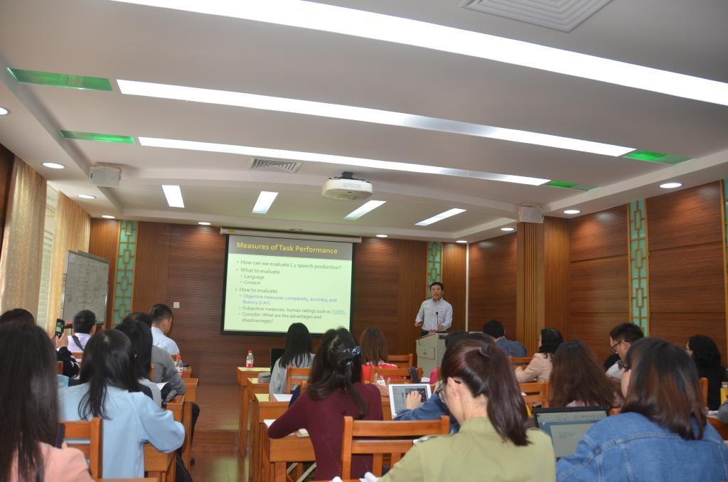 2019年5月6日下午,我校云山讲座教授、美国佛罗里达州立大学副教授李少锋博士应邀在我中心举办了“关于二语口语的复杂度,准确度及流利度的测量”的工作坊。本次工作坊为李少锋博士此次聚焦任务型语言教学系列讲座的开篇之作,由我中心副主任徐海教授主持,来自我中心及校内外的众多师生参与了本场讲座。