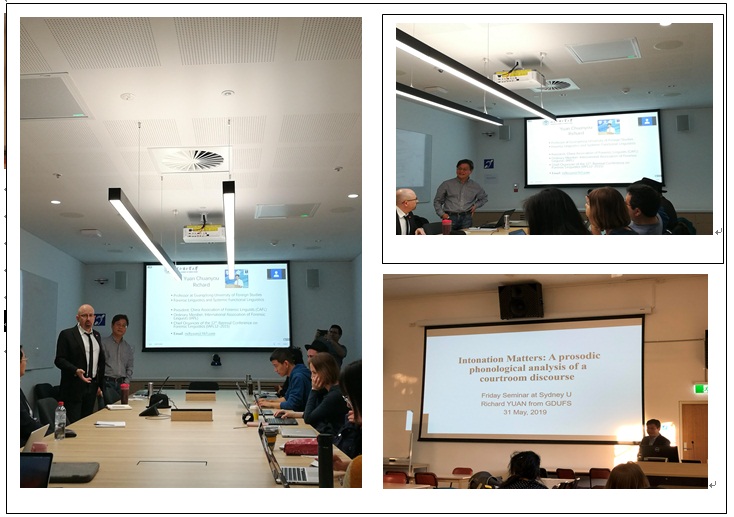我中心研究员袁传有教授(法律语言学与功能语言学方向)目前在澳大利亚悉尼大学访学,合作导师为Jim Martin 和Karl Maton两位著名教授。
