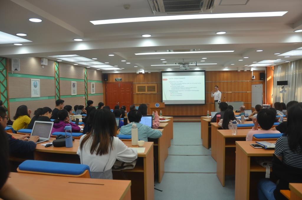 2019年11月5日上午9:30,东京外国语大学的Yukio Tono教授应邀做客我校著名教授论坛第423讲,作了一场题为《语料库语言学与外语教学》的精彩讲座。讲座由我中心副主任徐海教授主持,吸引了中心研究员和众多校内外师生参加。