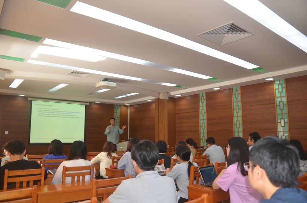 2019年11月6日上午,云山讲座教授龚涛博士在文科基地演示厅为我们带来了他系列讲座的第一场,题目是:行为实验研究语言处理Ⅰ。