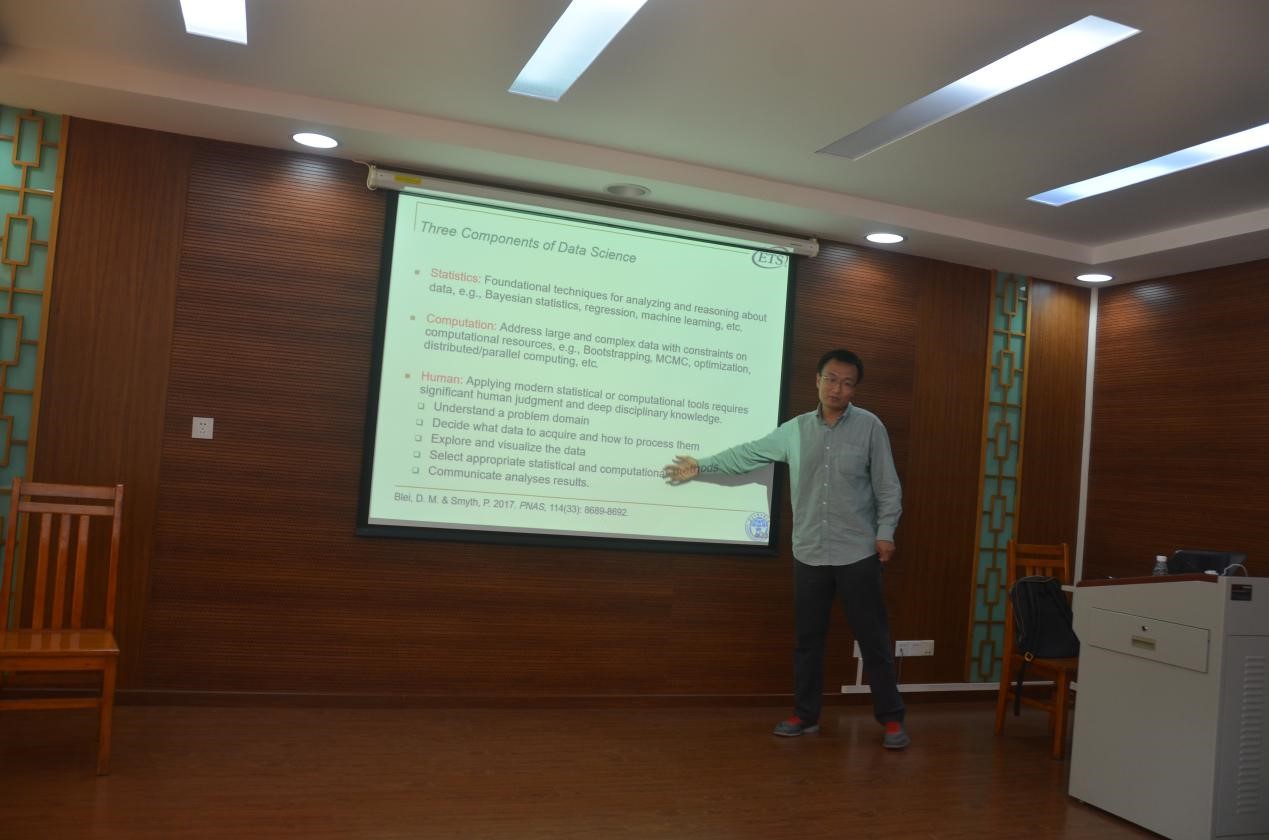 2019年11月18日上午,云山讲座教授龚涛博士在文科基地演示厅为我们带来了他系列讲座的最后一讲——Data Science Research in Psycholinguistics。本场讲座伊始,龚涛博士向我们介绍了数据科学的三大核心成分包括:统计(statistics)、计算(computation)、和人的参与(human),并为我们介绍了数据科学在心理语言学领域的应用,主要包括其近期研究中的1)词汇特性与个体阅读技能差异对在线句子阅读的影响——一项基于眼动技术的研究;2)利用社交网络语言来预测个体幸福指数的研究。