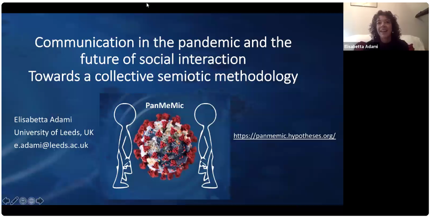 针对由疫情带来的沟通互动新常态,Adami教授认为有必要整合学术圈内外和不同学科的资源来开展符号学研究。她认为个体对上述变化的观察难免片面和杂乱无章,并且传统的符号学研究方法(如观察分析法或人类学法)较为艰深难懂,因此急需一种新的研究方法来应对疫情引起的剧变。她提出参考全民科学(citizen science)的思路,尝试集体研究法(Collective Research Methodology),这是一种强调即时、动态、公开和合作的研究方法。为了实现这个设想,她邀请来自30多个国家的符号学家共同发起PanMeMic(https://panmemic.hypotheses.org/)项目进行探索。该项目强调自愿参与、及时分享与沟通,并不拘泥于形式,旨在提供一个平台让尽可能多的学术圈内外的参与者分享及探讨疫情沟通的变化。