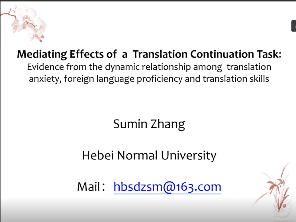 杨连瑞教授发言的题目是“续论的产生及其哲学理论基础”,他从哲学层面围绕续论进行了深入探讨,并详细阐述了系统论、控制论和信息论三个维度与续论的关联。杨连瑞教授特别强调了互动理论和续论之间的联系,认为续论结合了认知互动论和社会文化互动论的核心观点,进一步推动了互动理论的发展。此外,杨教授还简要介绍了中国海洋大学和青岛第九中学共建“二语习得研究协同创新实验基地”的情况,计划今后将续论应用于基础教育阶段的英语教学。张素敏教授发言的题目是“Mediating Effects of a Translation Continuation Task: Evidence from the dynamic relationship among translation anxiety, foreign language proficiency and translation skills”,她从动态系统理论出发,探讨了在完成续译任务前后学习者的翻译焦虑、外语语言水平和翻译技巧理解与产出之间的动态关系,研究发现,具有中等焦虑和外语语言水平的学习者在续译任务中受益最大。