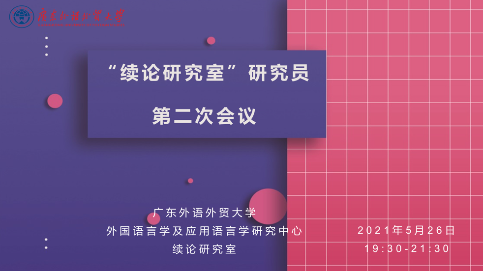 2021年5月26日19:30-21:30,我校外国语言学及应用语言学研究中心“续论研究室”成功举行了研究员第二次内部研讨活动。研讨会采用线上会议模式,旨在分享续论理论和实证研究的最新成果,促进研究员之间的学术交流,推动研究进展。会议由许琪副教授主持,发言嘉宾包括中国海洋大学杨连瑞教授和河北师范大学张素敏教授。“续论研究室”负责人王初明教授及20余位研究员参加了此次会议。