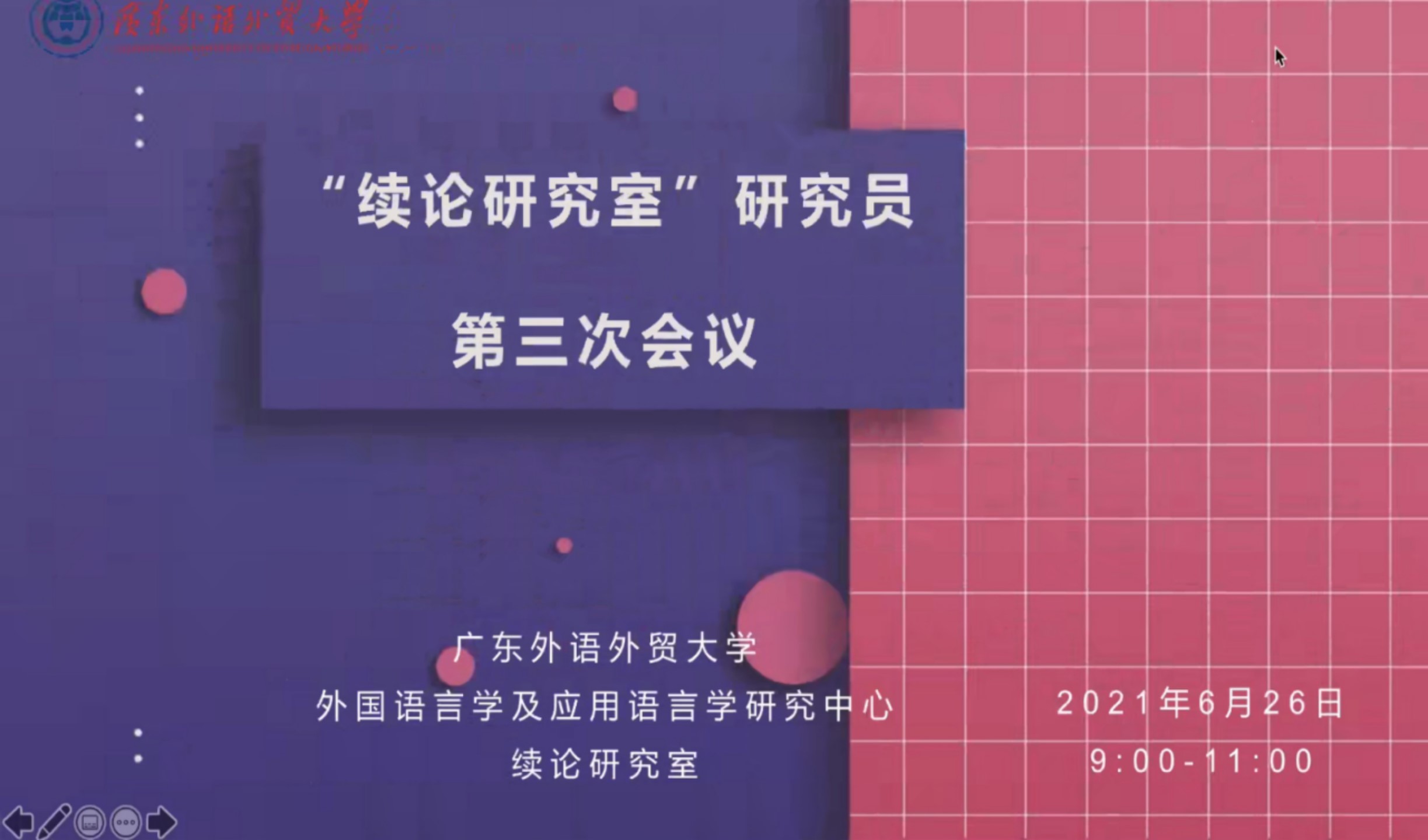 2021年6月26日9:00-11:00,我校外国语言学及应用语言学研究中心“续论研究室”成功举行了研究员第三次内部研讨活动。研讨会采用线上会议模式,会议由许琪副教授主持,发言嘉宾包括夏威夷大学郑东萍副教授和广东外语外贸大学杜寅寅副教授。“续论研究室”负责人王初明教授及20余位研究员参加了此次会议。