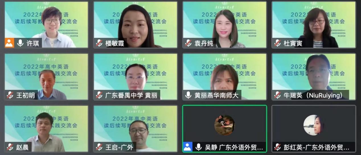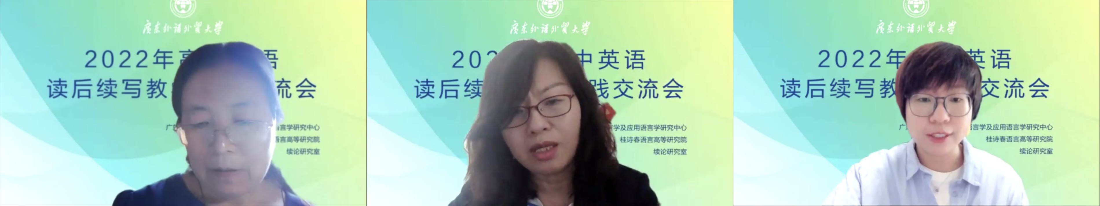 2022年4月10日,“高中英语读后续写教学实践交流会”成功在线举行。本次交流会由教育部人文社科重点研究基地—广东外语外贸大学外国语言学及应用语言学研究中心、桂诗春语言高等研究院与续论研究室联合主办。会议形式涵盖主题发言、经验分享和互动讨论。来自全国各地的专家学者、一线外语教师和研究生近700人相聚云端,共同探讨续论指导下的读后续写任务在高中英语教学中的应用成果,解决读后续写教学实践中的难题。