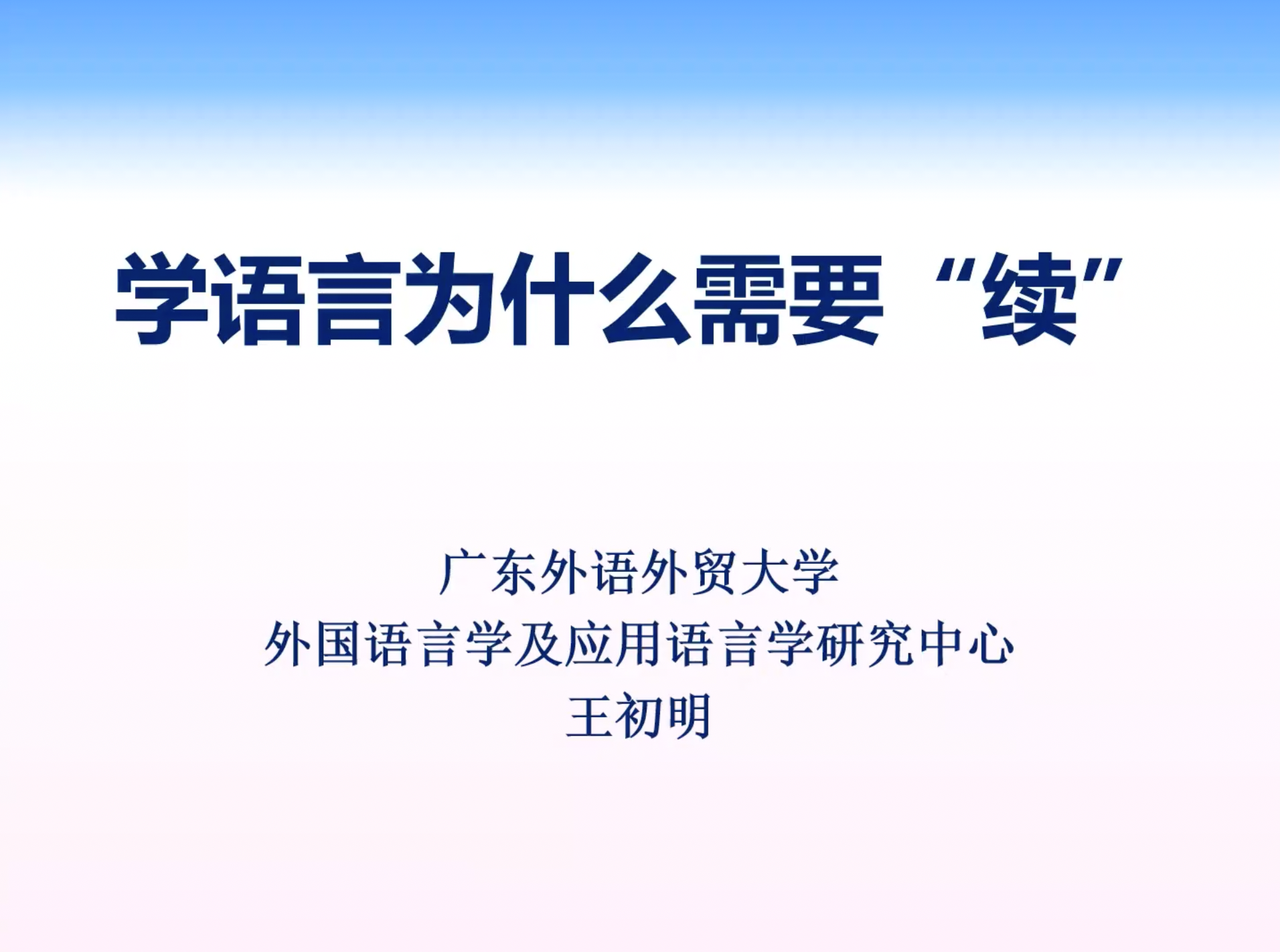 在主题发言环节,王初明教授以“为什么学语言要‘续’?”为题,阐释了续论的内涵与重要性。王教授指出,续论是语言习得观,强调语言是通过互动、更是通过“续”学会的。王教授认为语言需要传承,语言是思想内容的载体,“续”语言应由动态内容引领,在续内容的过程中学用语言。此外,王教授表示,“续”最突出的特征为语言表达与语言理解紧密结合,有利于解决语言学习的根本性问题。在教学中注入“续”元素可以强化协同效应,提高学用外语效率。