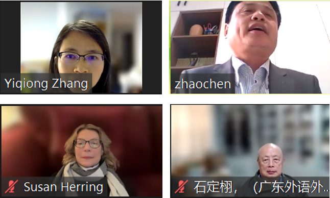 会议开幕式由会议发起人、教育部人文社科重点研究基地外国语言学及应用语言学研究中心的云山青年学者张艺琼教授主持。印第安纳大学伯明顿分校的Susan Herring教授、澳大利亚新南威尔士大学的Michele Zappavigna教授及外国语言学及应用语言学研究中心的云山资深学者石定栩教授等出席了开幕式。中心主任赵晨教授致开幕辞,他介绍了广外及外国语言学及应用语言学研究中心的发展近况并诚挚邀请参会者前来进行线下学术交流。赵晨教授指出,鉴于图文字研究的复杂性,跨学科、跨文化的国际学术研讨有助于推进图文字研究的深度。