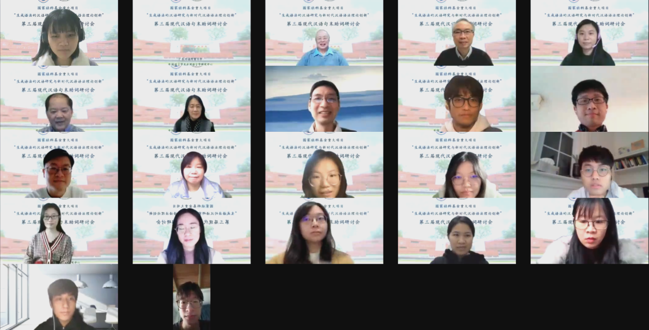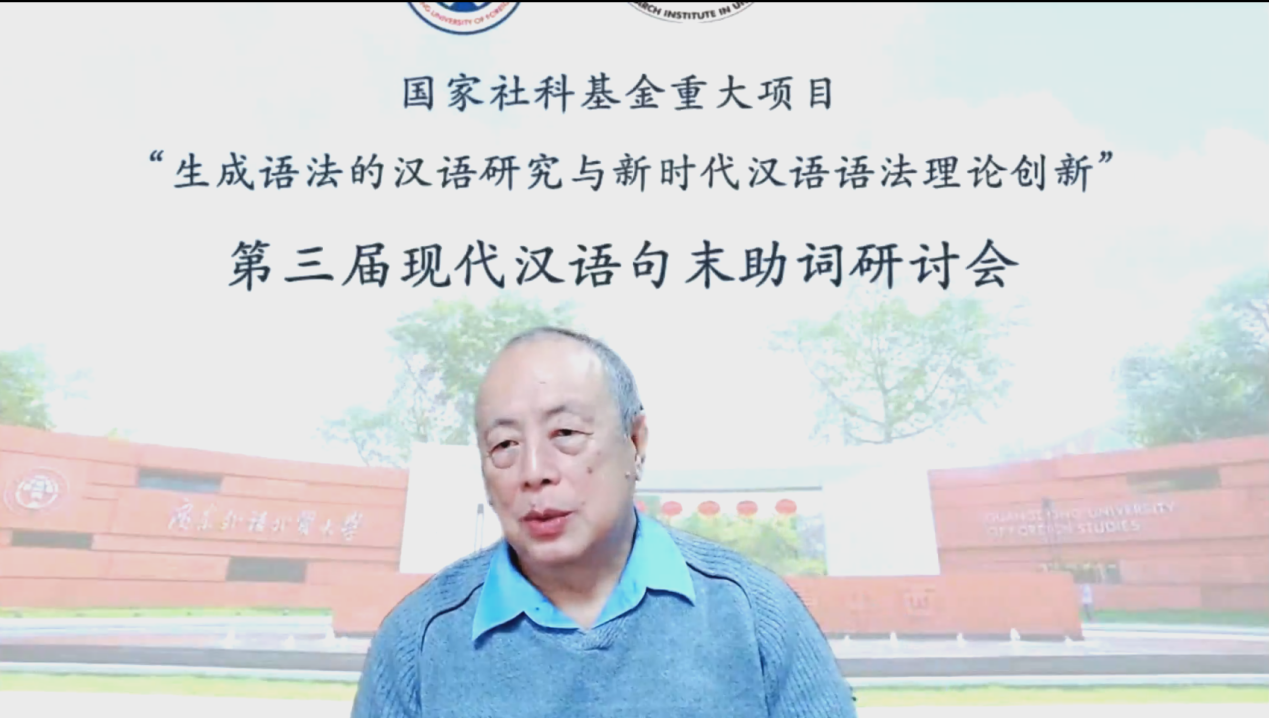 2022年12月17日,“第三届现代汉语句末助词研讨会”成功在线举行。此次会议为国家社科基金重大项目“生成语法的汉语研究与新时代汉语语法理论创新”(项目号18ZDA291)子课题(三)“句法-语用界面研究,句末助词”的工作会议,由教育部人文社科重点研究基地广东外语外贸大学外国语言学及应用语言学研究中心、桂诗春语言高等研究院主办。此次研讨会的开幕式由国家社科基金重大项目主持人、我校外国语言学及应用语言学研究中心的石定栩教授主持,我校石定栩教授、张庆文教授、程航博士、陈哲博士、杨洋博士、李昊泽博士等参加了会议。