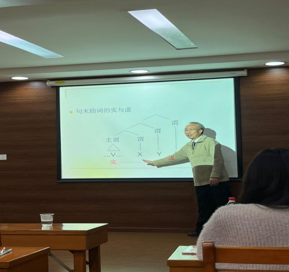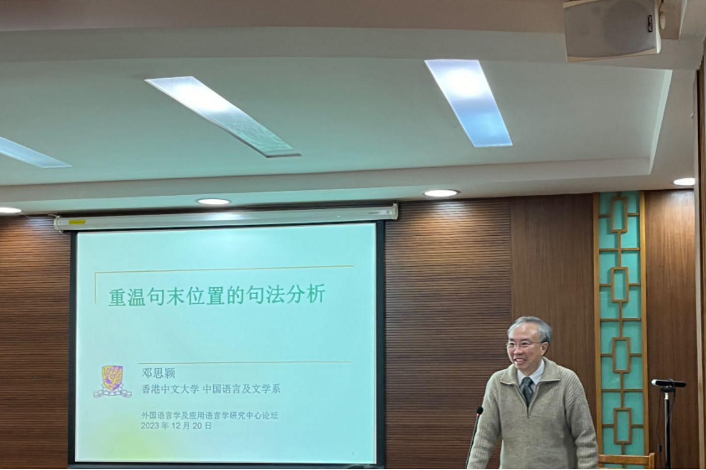 2023年12月20日下午,香港中文大学邓思颖教授应我中心的邀请作了题为“重温句末位置的分析”的学术讲座,此次讲座由我中心的张庆文教授担任主持。我中心的石定栩教授、程航博士、英文学院陈哲副教授等校内师生参与了此次学术讲座及后续讨论。
