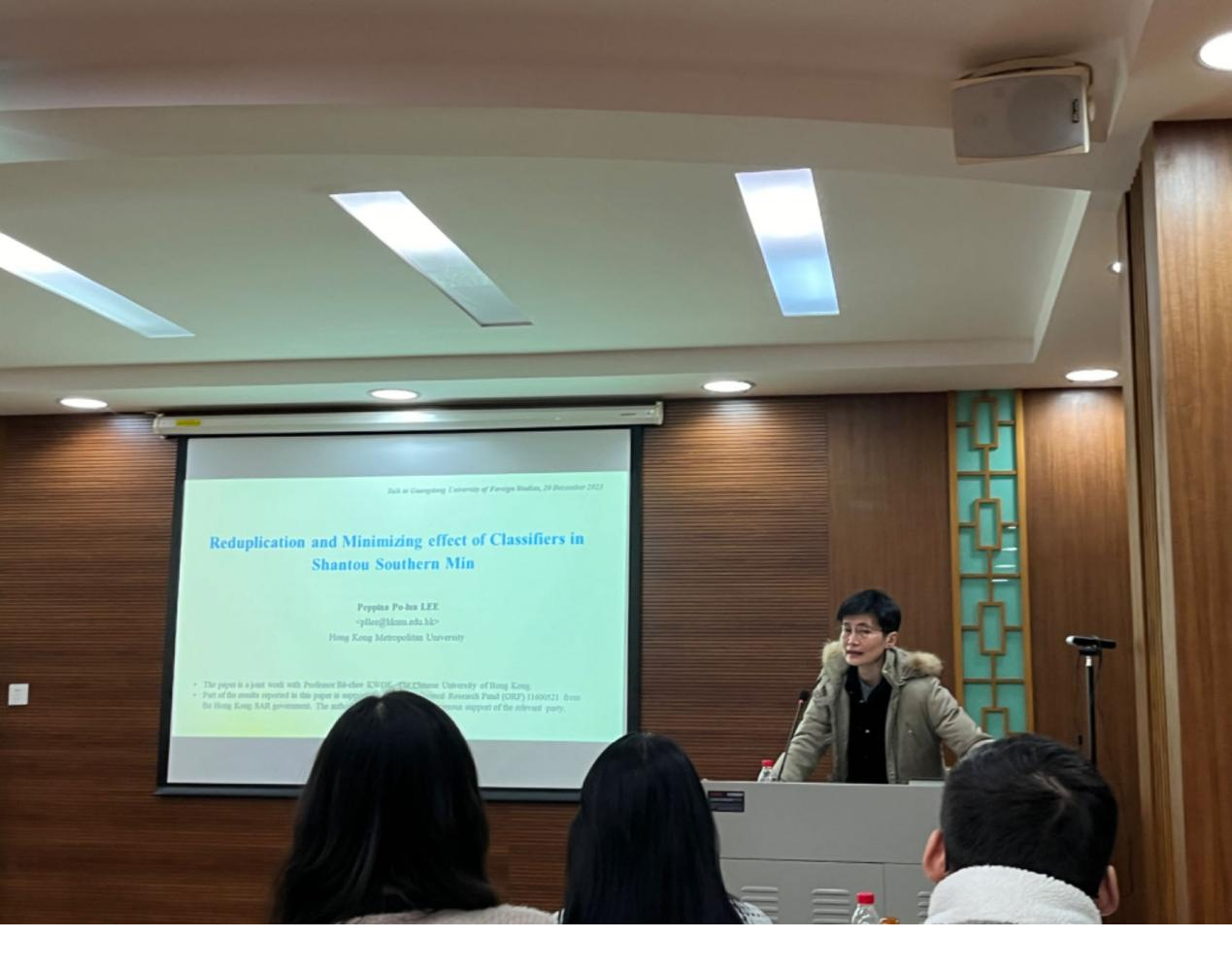2023年12月20日下午,香港都会大学李宝伦教授应邀在本中心做了题为“Reduplication and Minimizing Effect of Classifiers in Shantou Southern Min”的学术讲座。此次讲座由我中心张庆文教授担任主持,我中心的石定栩教授、程航博士、英文学院陈哲副教授以及中心和相关学院的本、硕、博学生参加了本次讲座。