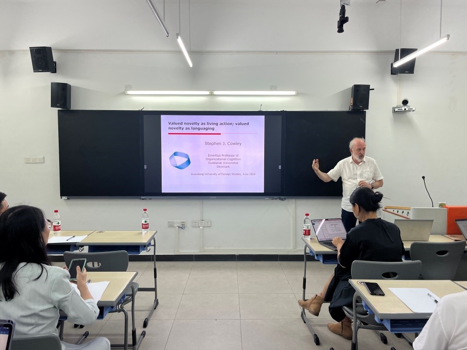 2024年6月24日下午,南丹麦大学Stephen J. Cowley教授、多伦多都会大学余红兵副教授和夏威夷大学郑东萍副教授应邀分别带来了题为“Valued novelty as languaging; valued novelty as living action”、“Modelling extends into language and world-making”,以及“Novelty by design in second language studies”的三场讲座。此次讲座为我中心续论研究室暨二语与外语教学团队系列研讨活动,在北校区一教南楼107教室举行。讲座由秦丽莉教授主持,王初明教授、魏在江教授、牛瑞英教授、王启研究员等出席活动。此次学术讲座吸引了众多听众,包括中心和相关院校的教师、硕博士研究生。