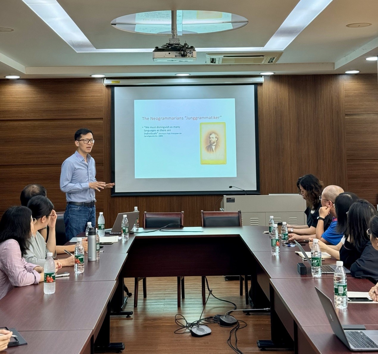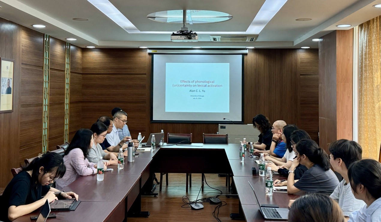2024年7月15日下午,芝加哥大学语言学系主任Alan C. L. Yu教授(the William Colvin Professor)应双语认知与发展实验室邀请做主题报告,题为《语音(不)确定性对词汇激活的影响》(Effects of phonological (un)certainty on lexical activation)。此次讲座在文科基地307会议室举行,由实验室兼职研究员蔡任栋博士主持。参加讲座的听众包括实验室副主任梁利娟教授、中文学院贝先明教授、实验室兼职研究员林洁绚博士、文科基地彭红英博士、英文学院王晓培博士和陈李军博士、英语教育学院陈艾舒博士、暨南大学刘敏博士以及校内外的研究生和本科生等。