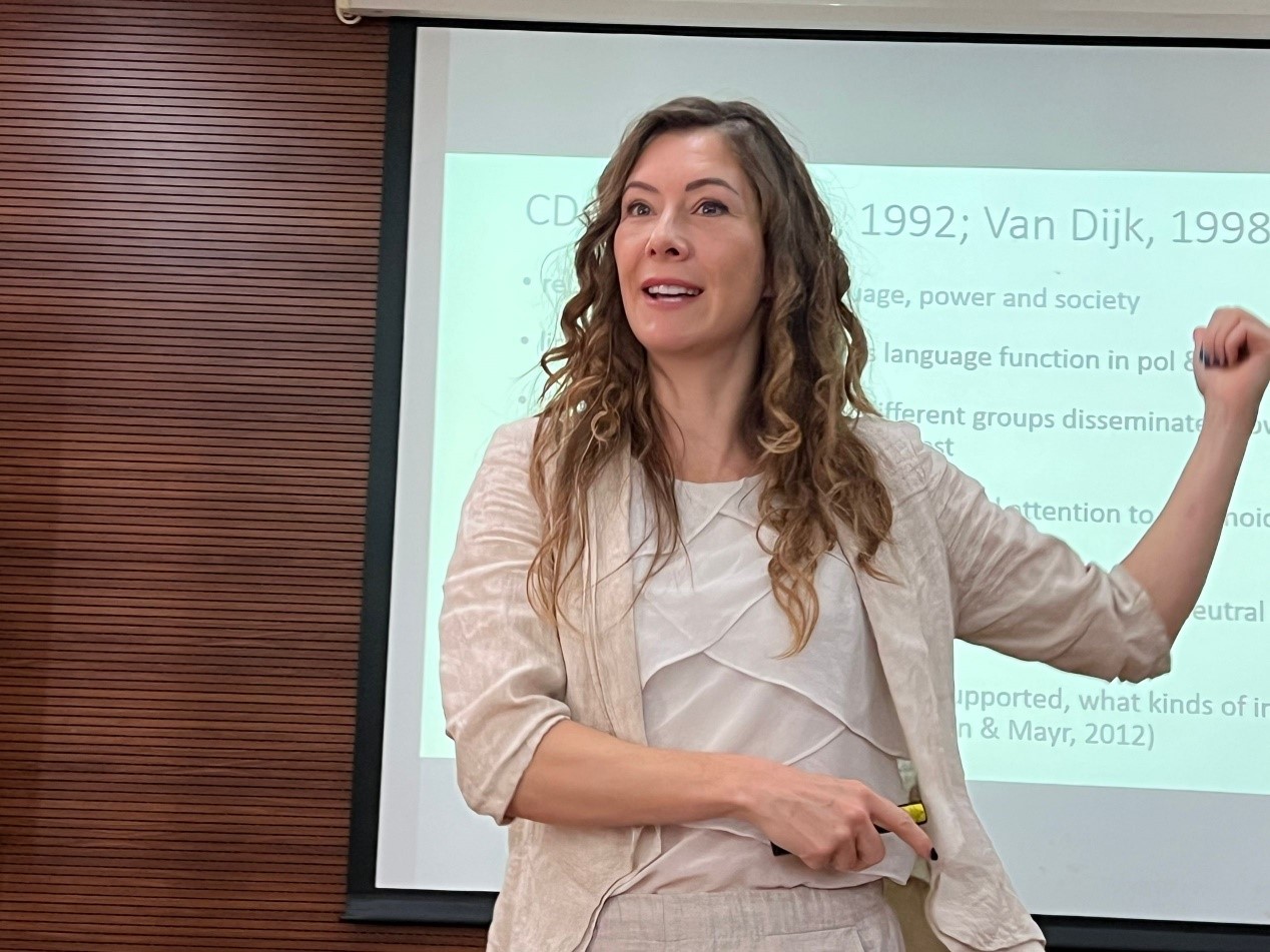 2024年10月31日下午两点,上海外国语大学语料库研究与应用研究院的特聘教授Gwen Bouvier应邀在中心演示厅作了题为“Networks and influencers: Understanding the quality of civic debate on Twitter and Weibo”的学术讲座。讲座展示如何运用多模态批评性话语分析探讨社交媒体上的公民辩论,加深对社会的理解。讲座由张艺琼教授主持,徐海教授、熊涛教授及众多校内外师生参与了本次讲座。