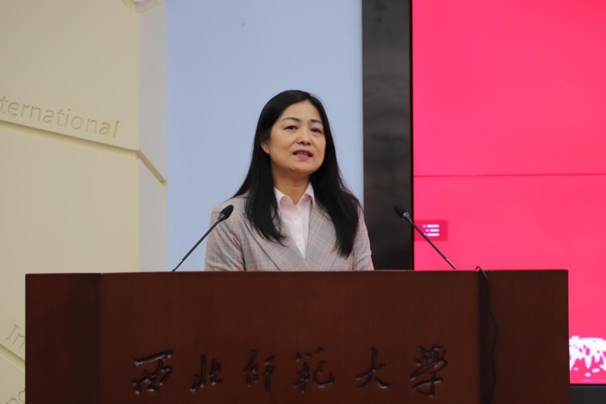 华南理工大学杨梅教授的主旨报告以“续论应用于国际中文教育的机遇与挑战”为题,首先分析了当前国际中文教育发展现状与目前难题。紧接着引入了“续论”这一理念,她解释说,“续论”致力于调查外语学习的基本规律,了解外语发展的核心机理,在以续促学的语言学习理念基础上,构建了一种创新型的外语教学理论,这对于推动外语教学实践发展具有重要意义。最后杨教授以当前国际中文教育的核心需求为导向讨论了续论应用在国际中文教育的机遇与挑战。本场主旨发言由西北师范大学外国语学院副院长李莉副教授主持。