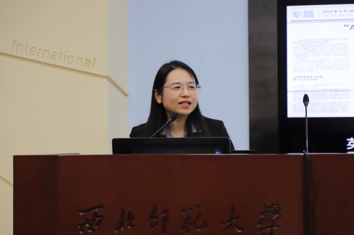 华南师范大学金檀教授以“故事续写题源文本的智能加工研究:以‘一针三库’为例”为题,指出使用大语言模型进行故事续写素材加工的三大挑战:文本篇幅删减;文本语言改编;写作支持提供。针对各项挑战,金教授强调尝试采用大语言模型解决方案。最后,金教授对故事续写题源文本的人机协作加工研究提出展望并提供建议。本场主旨发言由西北师范大学外国语学院副院长俞婷教授主持。