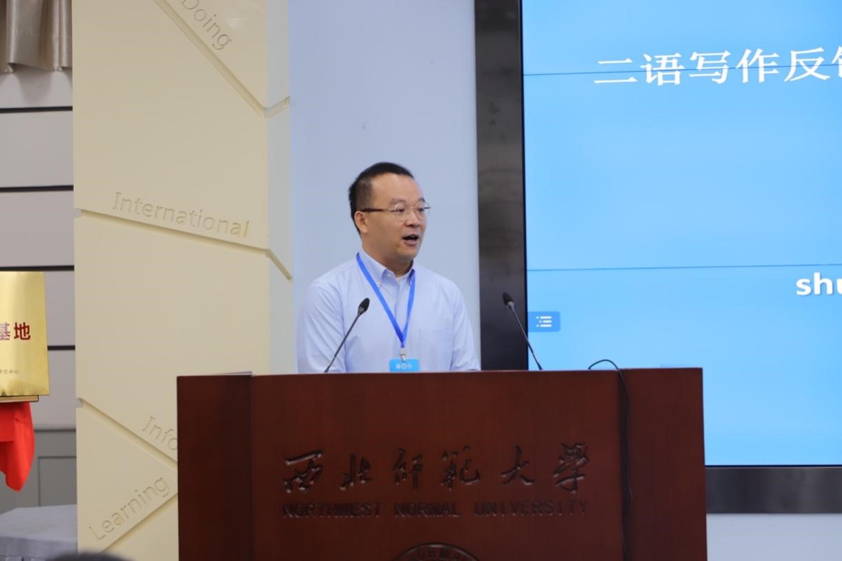 澳门大学于书林副教授以“二语写作反馈研究中的写作任务、写作过程和写作者”为题,强调写作反馈是二语写作和应用语言学研究领域的重点领域。他认为现有研究未能对写作任务表现、写作过程、写作者的感情给予足够重视。于教授通过分析教师反馈、学生反馈、AI反馈,提出写作反馈要关注写作者作为人的全面发展。最后,他呈现了在我国英语写作情景下开展实证研究的途径和方法,并对如何运用反馈提升外语写作者的写作质量提出启示。本场主旨报告由我校许琪教授主持。