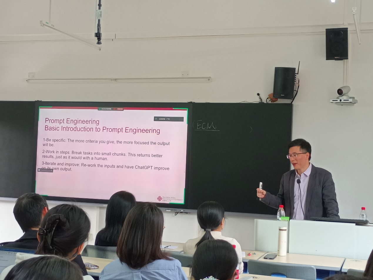 讲座中李德超教授讨论了如何优化LLMs输出的提示工程技术(prompt engineering) ,以确保大型语言模型翻译的准确性和语境适宜性。李德超教授详细介绍了特定框架下的零样本提示(Zero-shot Prompt)、单样本提示(One-shot Prompt)、少样本提示(Few-shot Prompt)、思维链提示(Chain-of-Thought Prompt)、角色扮演提示(Role-Playing Prompt)和先问后答提示(Ask Before Answer Prompting)等使用方法。他指出,通过提供特定的框架,这些提示能让现代LLMs(如ChatGPT)生成更详细、可重复且准确的回复。同时,李德超教授也讨论了迭代提示(Iterative Prompt),通过LLMs中迭代优化的方式来不断调整和完善提示词,为使用者提供最优提示词。最后,李德超教授通过对中国旅游文本的案例研究,分析了LLMs在理解上下文和文化细微差别方面如何优于传统机器和人工翻译。