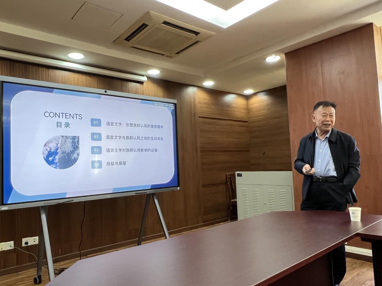 讲座最后,张积家教授精炼地总结了语言文字对族群认同的影响,指出这种影响具有建构性、情境性、动态性,并为未来的研究指明了方向。他特别强调实证研究、比较研究、方言与族群认同关系研究的重要性,指出要重视语言文字在构建中华民族共同体意识中的作用。张积家教授特别强调在民族地区推广国家通用语言的必要性,建议从儿童早期教育开始,让少数民族成员掌握国家通用语言,以促进外群体内化和中华民族共同体意识的形成。他提倡树立“双母语”意识,认为国家通用语言与本民族语言同等重要,是构建中华民族认同的基础。同时,张积家教授指出,充分的族际接触对于形成族际认同至关重要,建议通过教育和间接接触手段,加强不同民族间的交流与融合,增进对各民族的了解和感情。