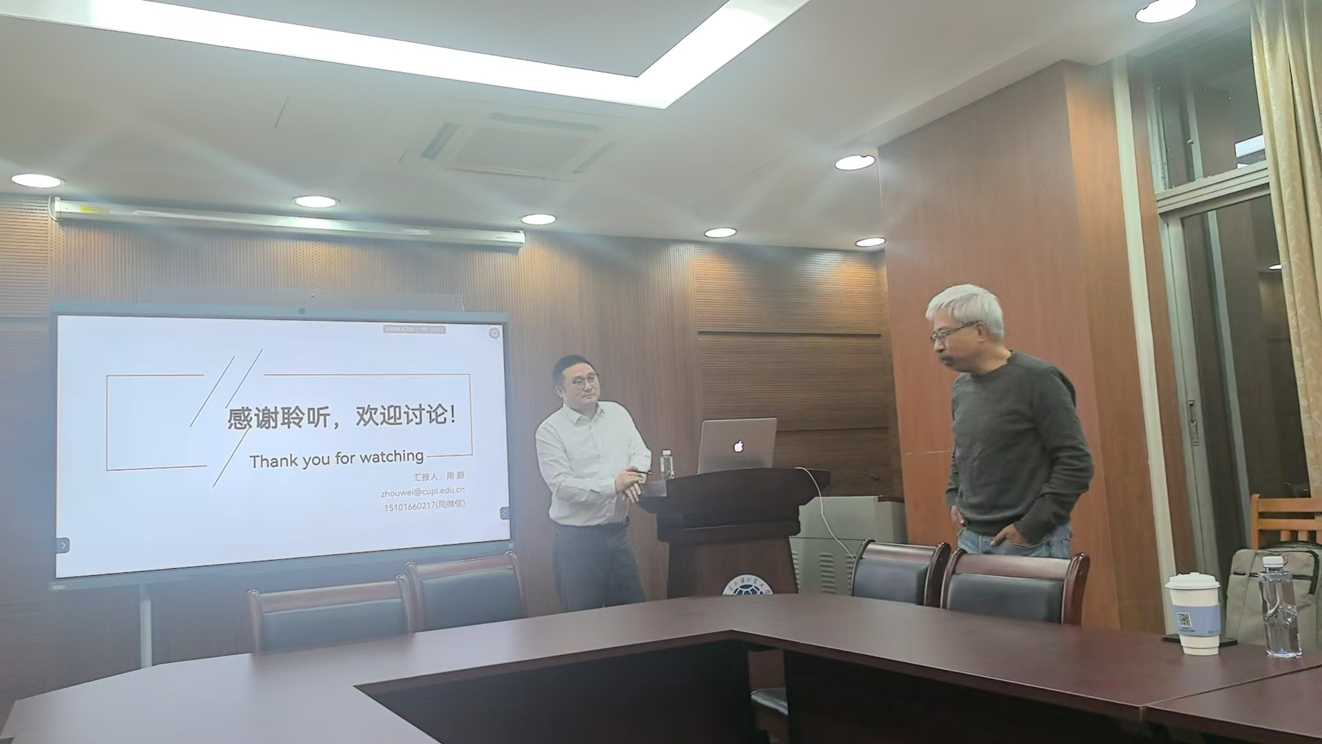 在讨论环节,鞠教授认为周博士的研究具有极大的创新性和可行性,给予了充分的肯定。袁传有教授认为该报告信息量非常大,分析深入浅出,既具有理论深度又能结合实践,具有极大的研究价值。许文涛博士、王珂博士以及其他在座的博士生都积极参与了讨论,涉及该研究的不同方面。