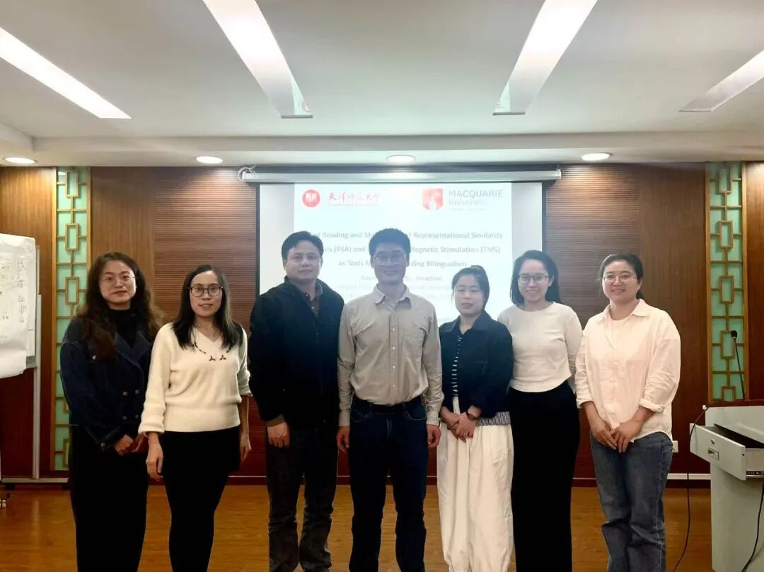 2025年12月2日下午,应我中心双语认知与发展实验室邀请,天津师范大学心理学部研究员吴俊杰副教授做了题为“读心术和操纵术?表征相似性分析方法和经颅磁刺激技术作为理解双语大脑的工具”的学术讲座。此次讲座由梁利娟教授主持,中心赵晨教授、陈瑶博士、余海燕博士、英文学院张才蕙博士、华南师范大学丛凤娇博士等校内外师生参加了讲座。