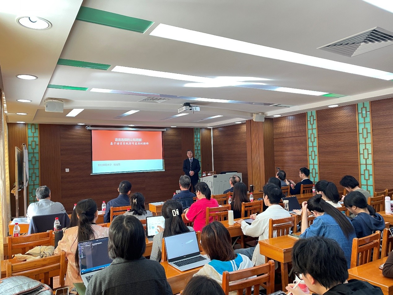 张教授主要从以下三个方面展开讨论。首先,张教授从不同的理论视角梳理了现行的基于语言使用的语言学为语言选择提供的理据支撑。他指出,系统功能语法提供了功能理据;语用学提供了社会文化理据;认知语言学则提供了以概念为基础的认知理据,但其在解释路径上存在缺陷,忽视了语言符号内部声音和概念或能指和所指间的关系作为人类认知底层的逻辑基础。
