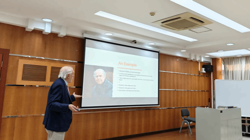 讲座伊始,Tindale 教授直截了当地指出:论证虽然是全人类普遍存在的社会活动,但我们对“什么是论证”的理解,却往往受制于自身的文化背景。长期以来,西方学术界习惯于将基于命题、演绎三段论的逻辑模式视为具有普适性的“唯一真理”,这种做法实际上忽视了全球各地区丰富多样的文化体验。