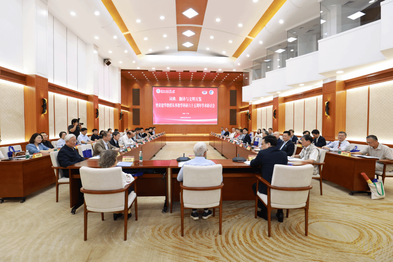 黄建华教授,广外党委书记石佑启教授,广外原党委书记、校长徐真华教授,中国辞书学会会长李宇明教授,以及来自北京外国语大学、上海外国语大学、西安外国语大学、四川外国语大学、复旦大学、南京大学、华侨大学、澳门中西创新学院、浙江越秀外国语学院等知名高校的专家学者,商务印书馆、外语教学与研究出版社、上海辞书出版社等权威出版机构的总编出席了研讨会。我校宣传部、规划部、科研部、研究生院、英语语言文化学院、西方语言文化学院、国际商务英语学院、外国语言学及应用语言学研究中心的负责人及教师代表,与黄建华教授的学生们一同参会。