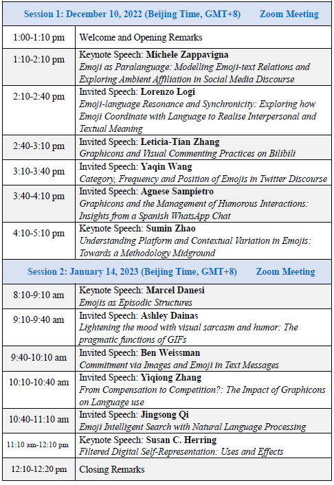 图文字(graphicon)指社交媒体中的表情符和表情包等图形表达,是语言动态复杂系统发展中出现的重要新现象,已成为数字媒体时代语言研究的新兴方向。由广东外语外贸大学外国语言学及应用语言学研究中心将于12月10日(周六)下午在线举办 “图文字与数字媒体” 国际研讨会(Symposium on Graphicons and Digital Media),研讨会下半场将于2023年1月14日上午举办。本次会议邀请图文字研究相关领域的国际著名学者及学术新秀分享研究前沿,融合跨学科视角探讨数字媒体中图文字的形式、意义、功能及演化进程,以图文字为切入点推进学界对语言动态复杂系统发展的认识。本次研讨会不收取会务费,欢迎各位注册参会。