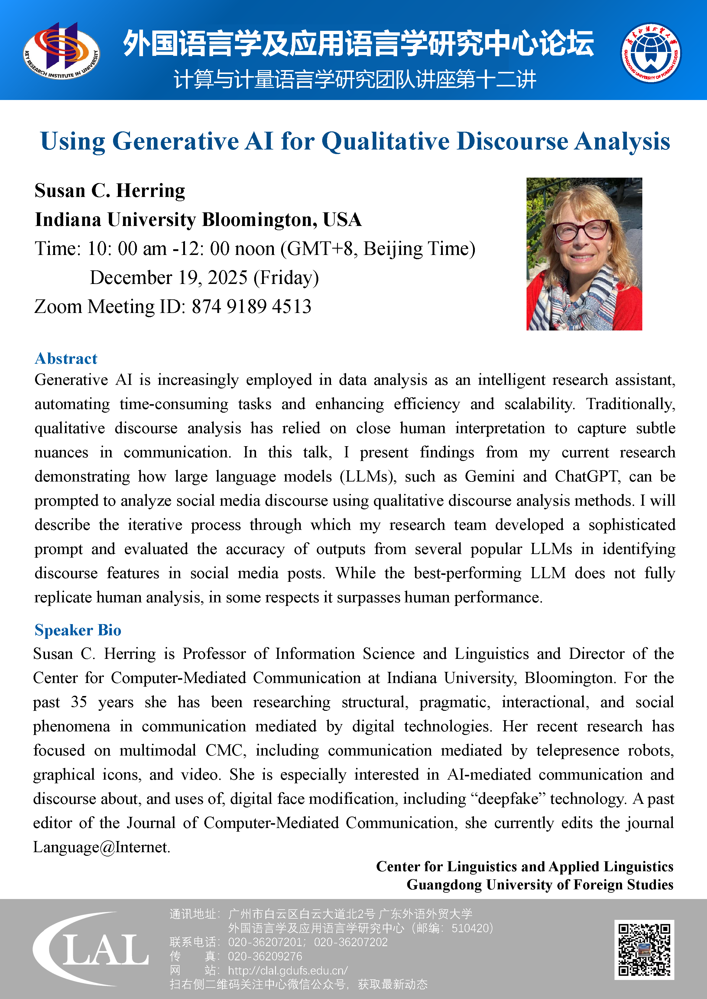 线上讲座预告|Susan C. Herring谈人工智能在质性语篇分析中的应用