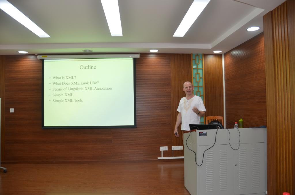 Professor Martin Weisser, who teaches at our university, gave a lecture entitled "Advanced corpus linguistics through simple XML (Tools)" in the National Key Research Center for Linguistics & Applied Linguistics, Guangdong University of Foreign Studies, on June 12, 2014.