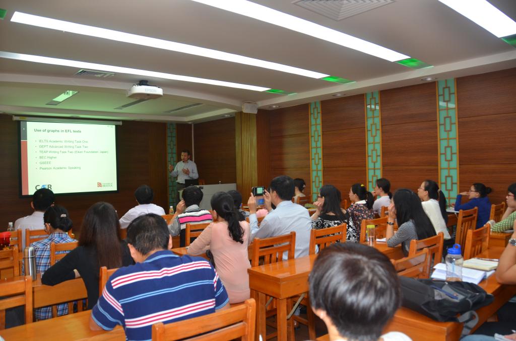 Professor YU Guoxingfrom Bristol University was invited to deliver a lecture entitled “Towards a Better Understanding of Graph-based Writing Tasks: the Constructs of Assessment and the Methods of Data Elicitation” on November 24, 2014. The lecture was chaired by Professor Xu Hai and attended by faculties and graduate students in the Center.