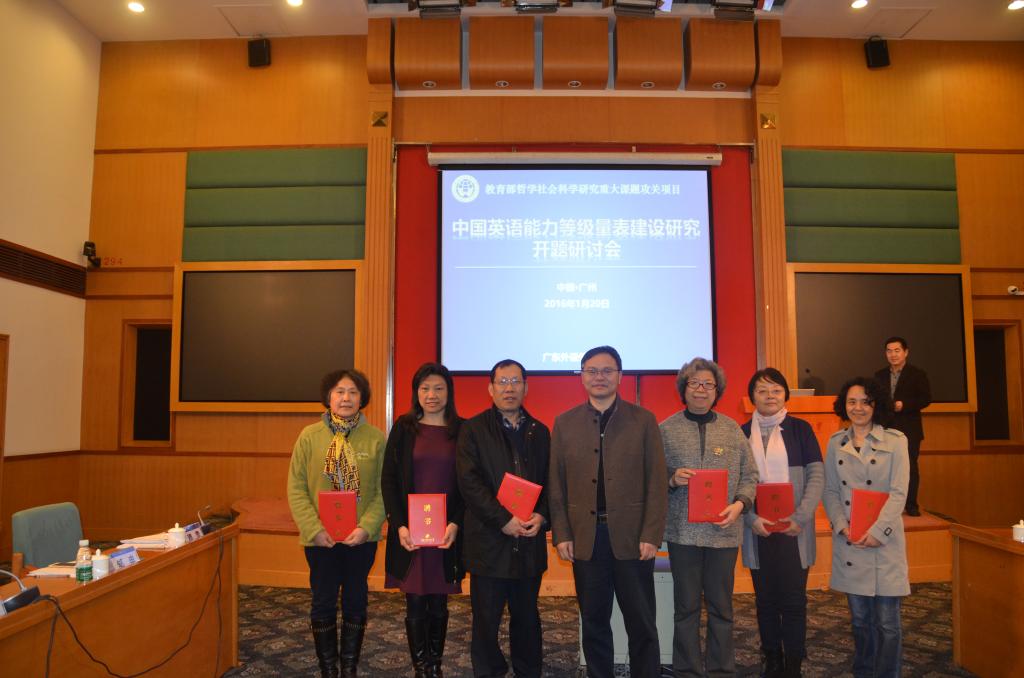 On January 20, 2016, the conference on China Standards of English (CSE) Construction and Research was successfully held at GDUFS hosted by Academic Research Division. This project is the Key Project of Philosophy and Social Sciences Research supported by Ministry of Education. Professor LIU Jianda, Director of the center is the PI of the project. Experts and scholars from several colleges and universities on language teaching and assessment participated in the conference. Professor ZHONG Weihe, President of Guangdong University of Foreign Studies, also attended the conference.